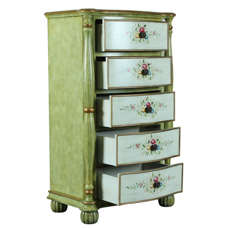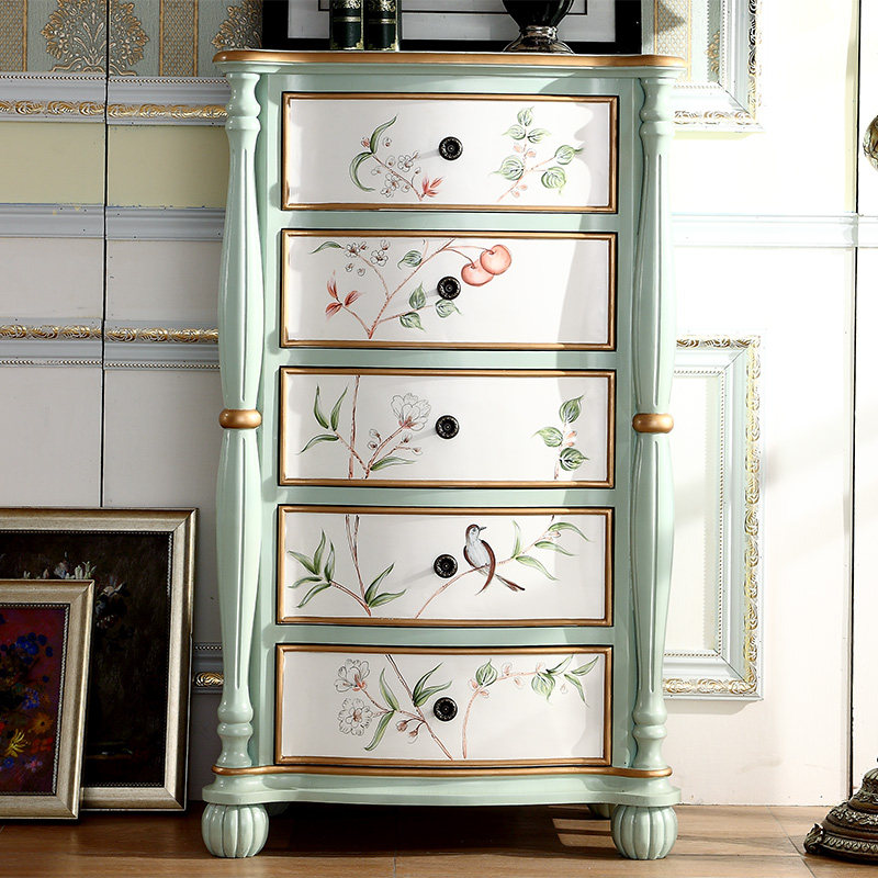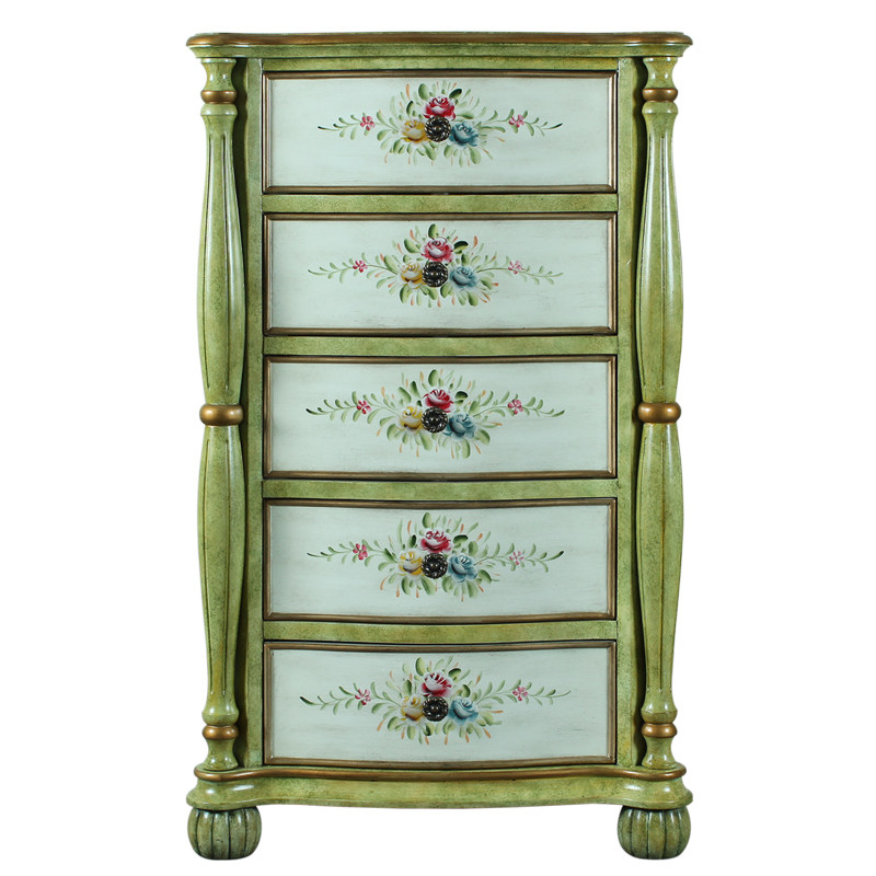 富兰德复古彩绘美式乡村木质五斗柜FW9001-5
