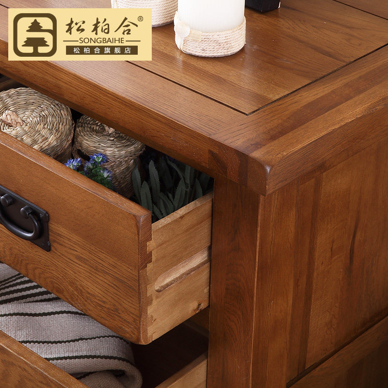 松柏合全实木橡木斗柜仿古3+4斗柜