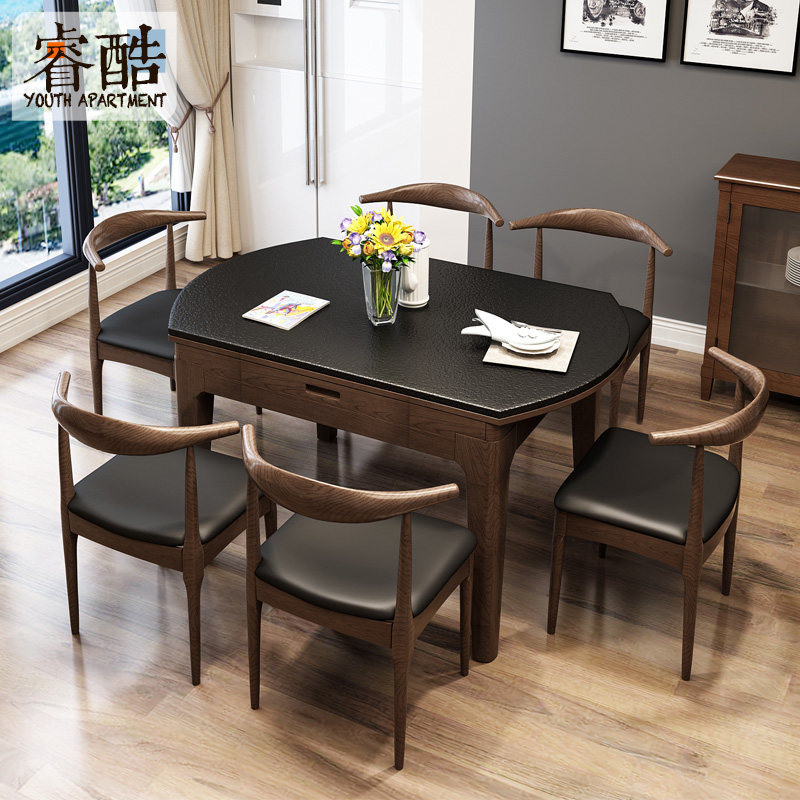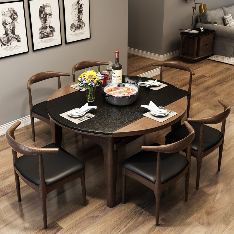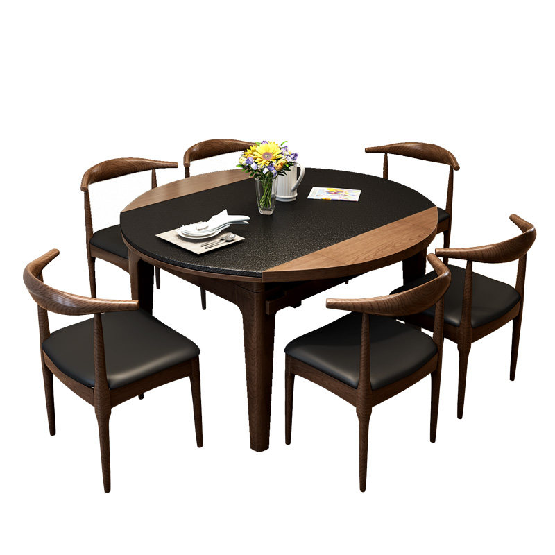 睿酷空间火烧石餐桌XD080-9B圆餐桌