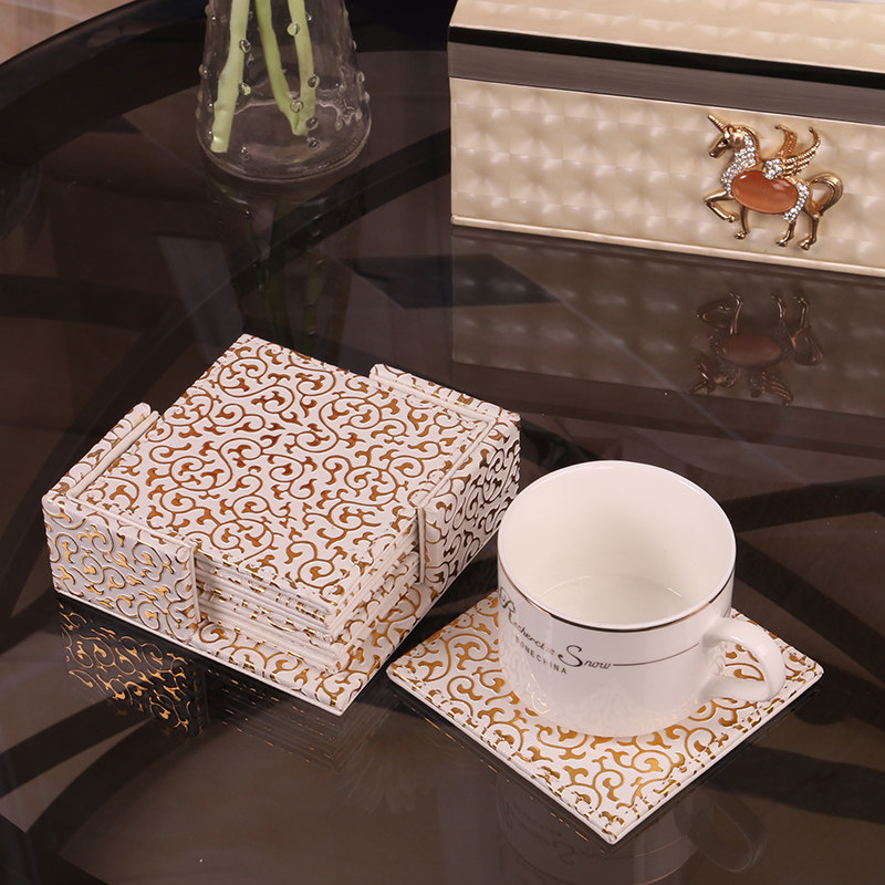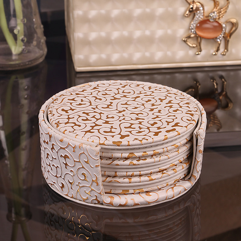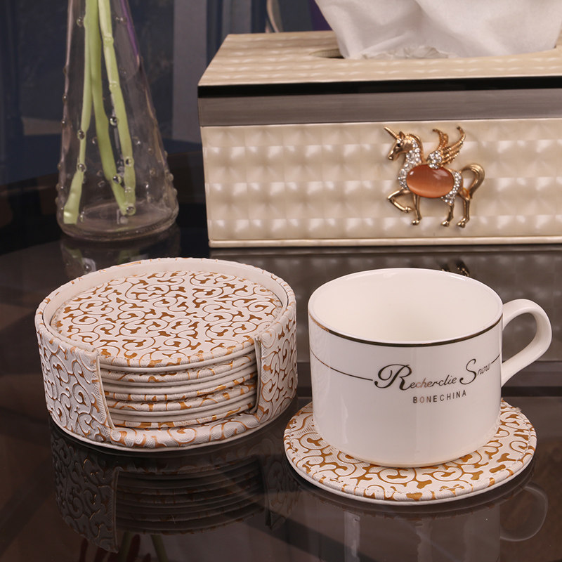 雅臣仕欧式皮杯垫金花纹杯垫