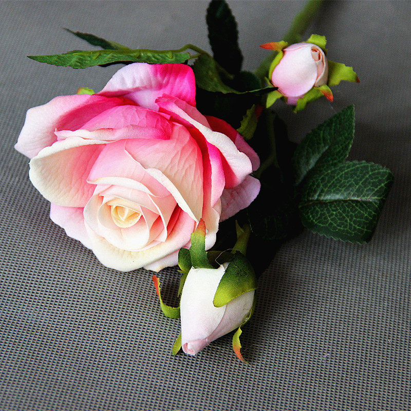 好韵桌摆仿真玫瑰花一花两蕾玫瑰