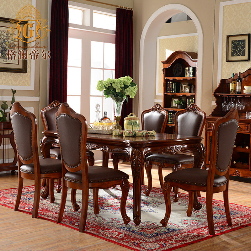 格澜帝尔美式实木雕刻长方形餐桌DT88705餐桌