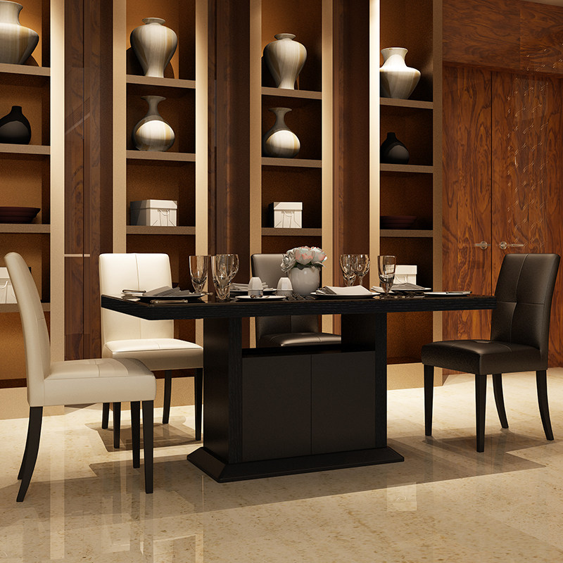 帝阁丽庭现代简约储物钢化玻璃餐桌1183T