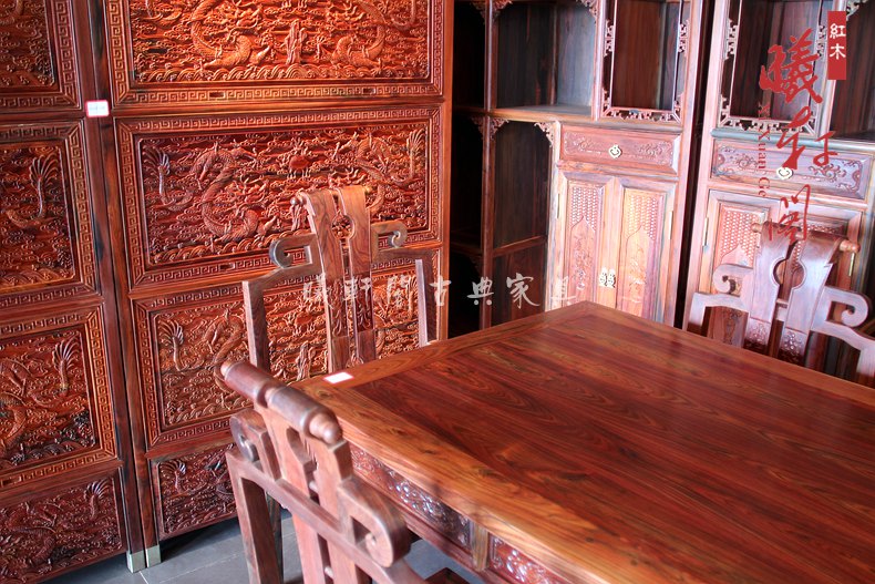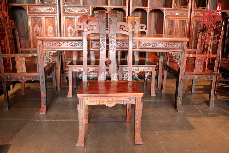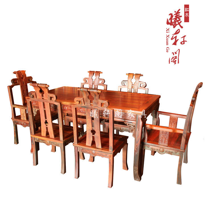 曦轩阁仿古红酸枝餐桌椅7件套红酸枝-茶桌椅