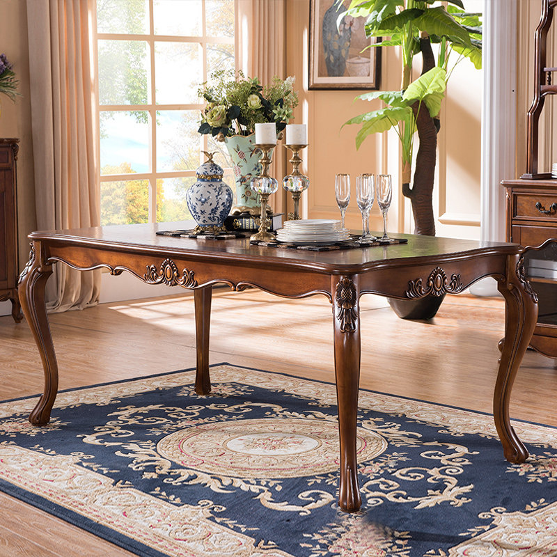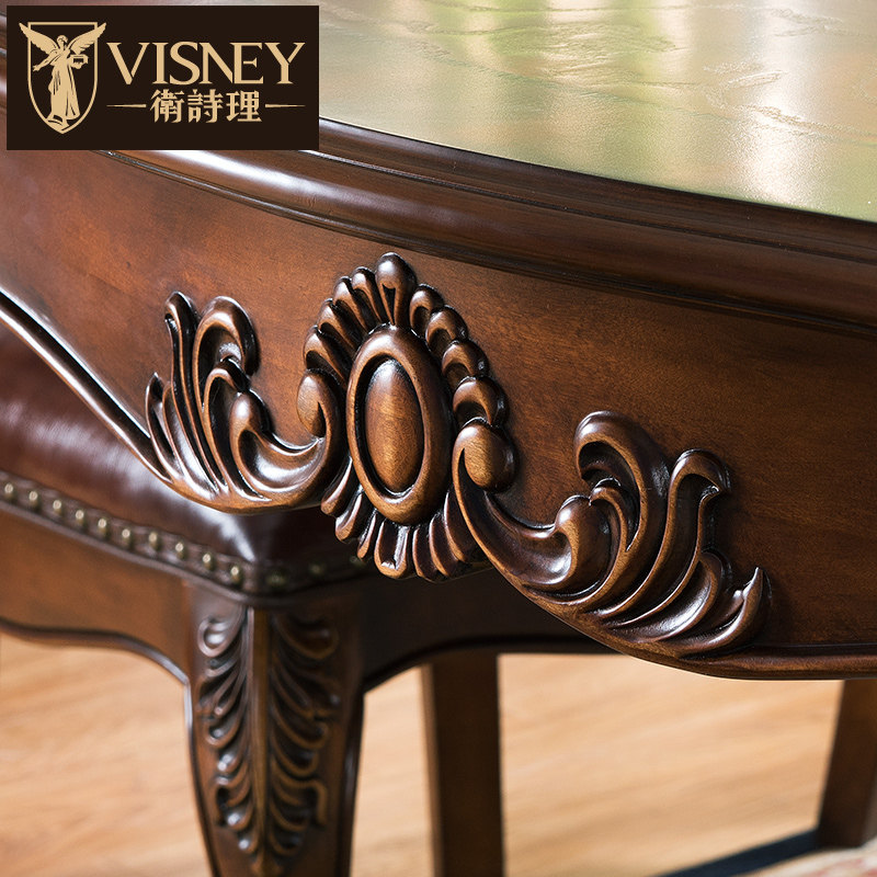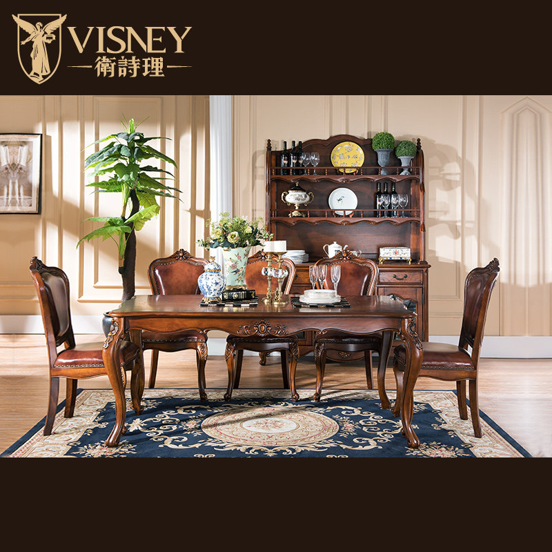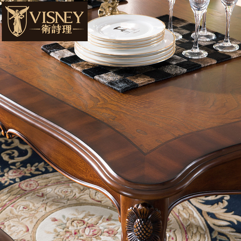 卫诗理家具ttj美式实木雕花六人餐桌20109W2