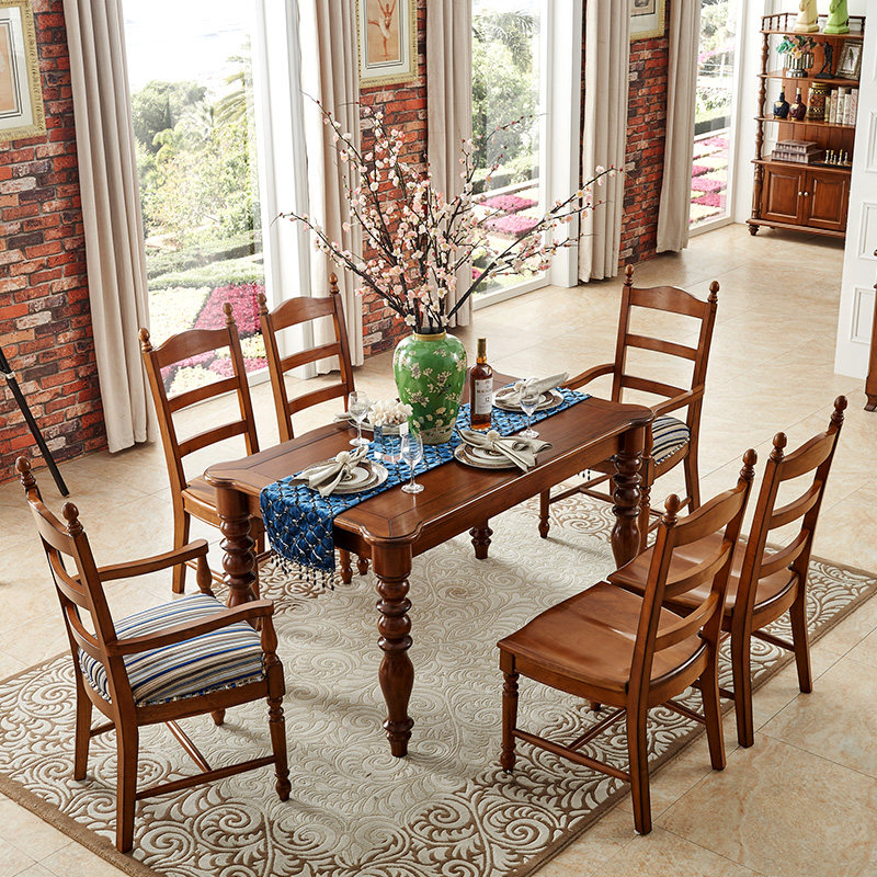 菲艺轩美式全实木餐桌椅305餐桌组合