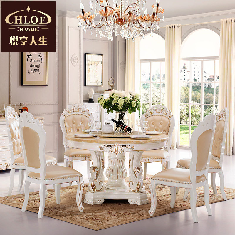 悦享人生家具欧式天然大理石餐桌珍珠白圆桌02