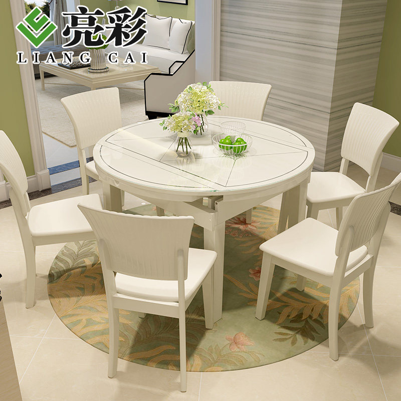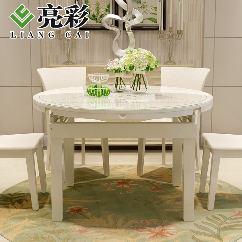 亮彩简约现代玻璃烤漆折叠伸缩圆桌H2系列