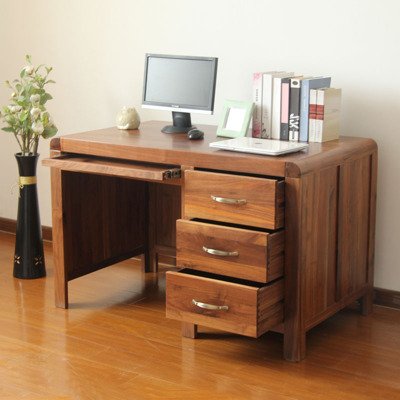 佳佰庭家具纯黑胡桃木实木书桌HH711