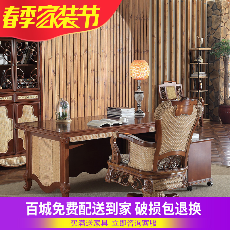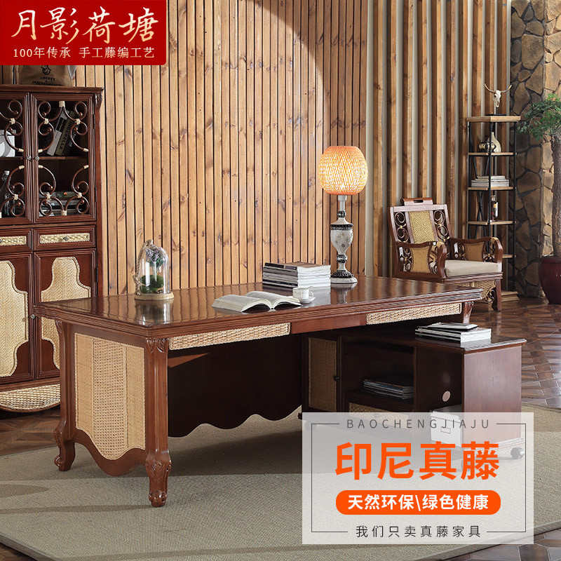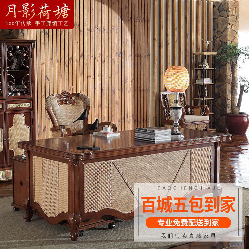 月影荷塘藤书桌椅电脑办公桌YL4007