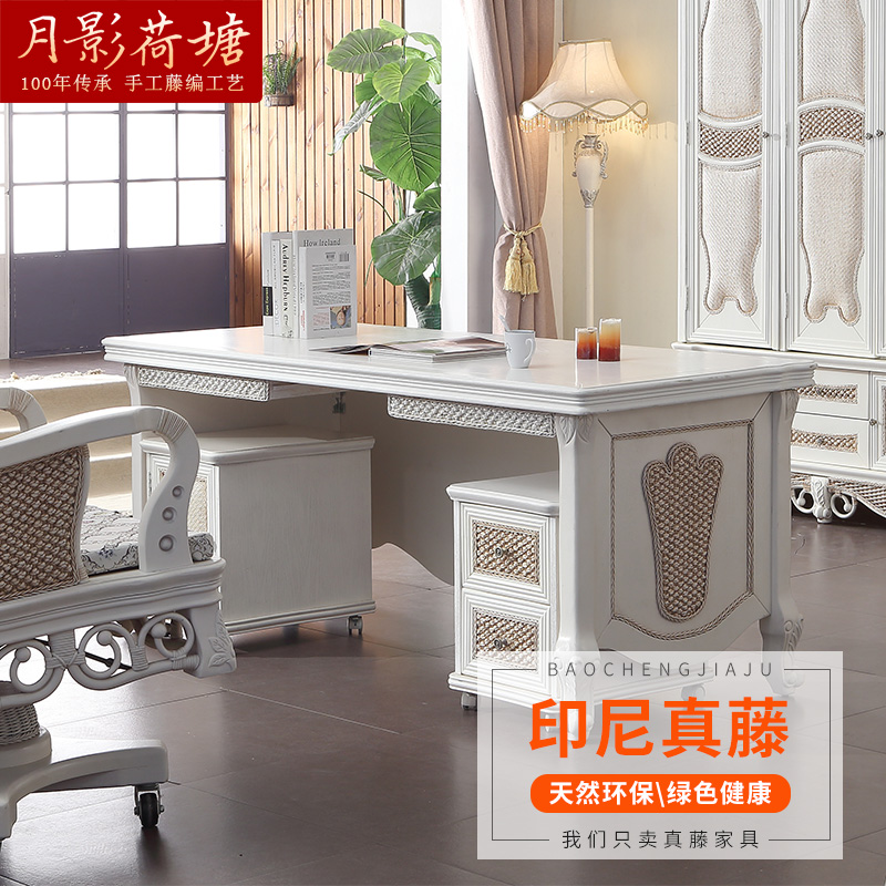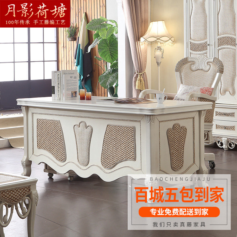 月影荷塘实木藤电脑桌YL407