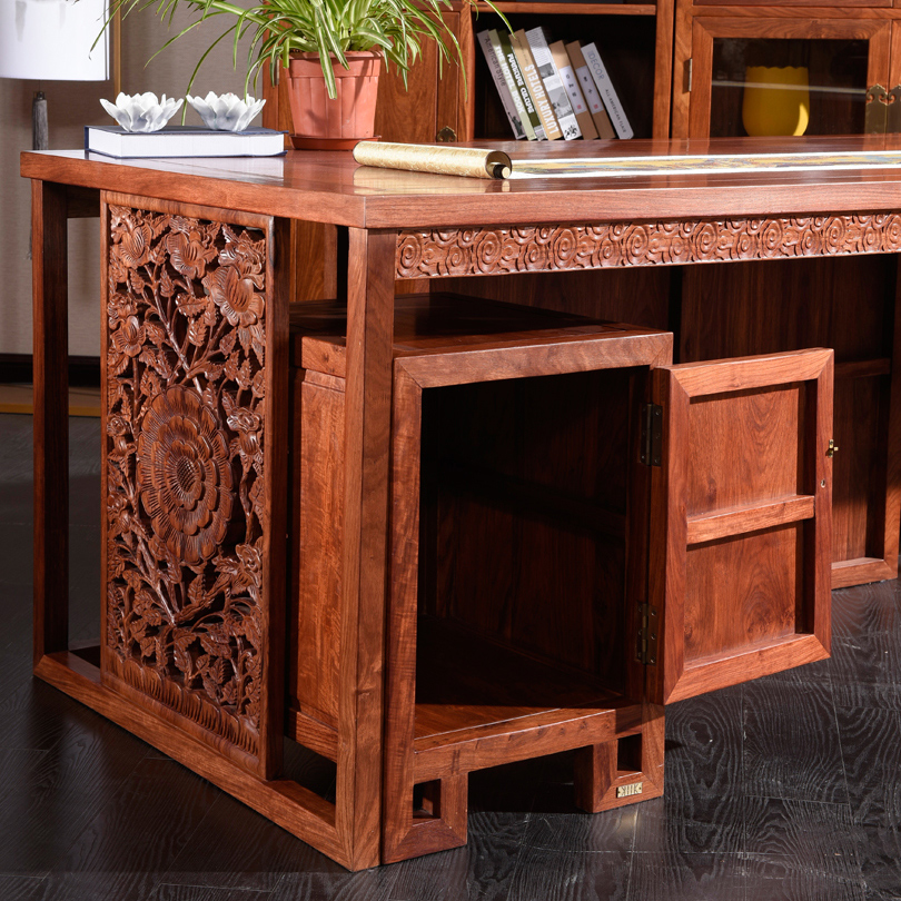 唯克美家新中式古典雕花紫檀木红木书桌8840