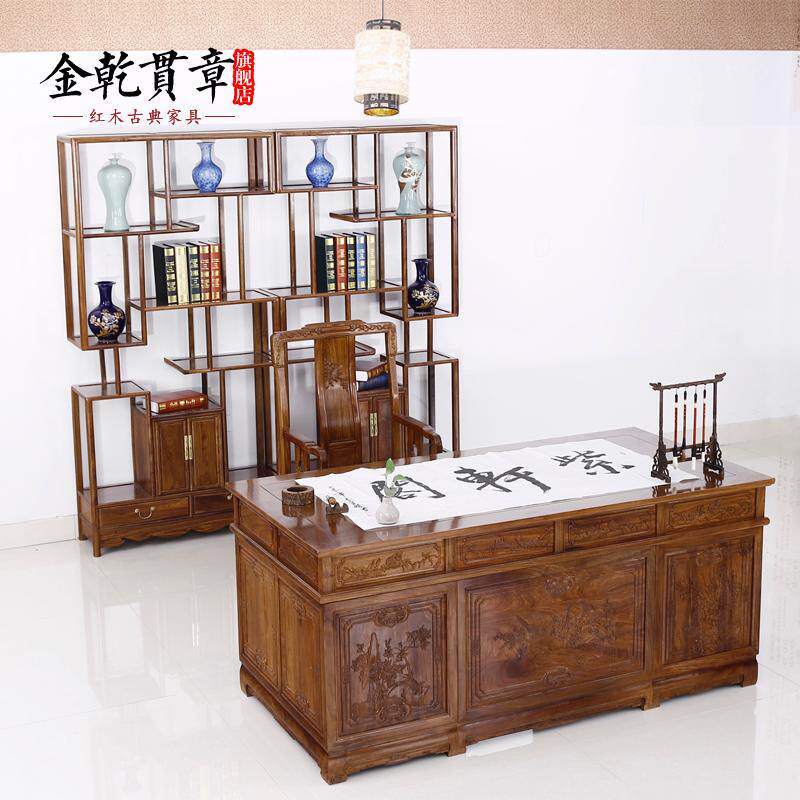 金乾贯章红木家具刺猬紫檀色书桌JCBGZ037