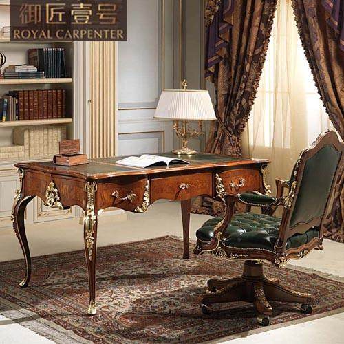 御匠壹号欧式家具实木雕花香槟金写字桌DJ-6560