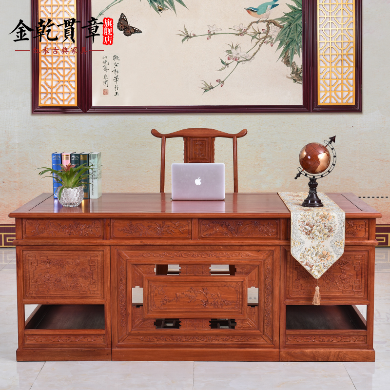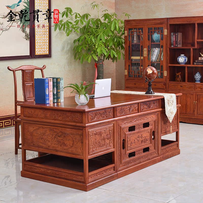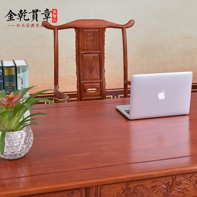 金乾贯章红木办公家具缅甸花梨木书桌HLBGZ039