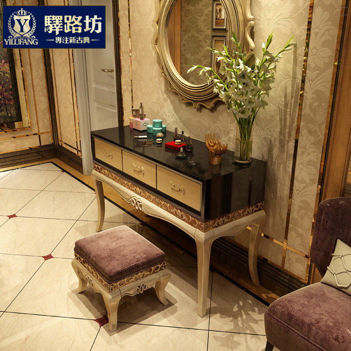 驿路坊欧式古典香槟银箔梳妆台伊莱梳妆台