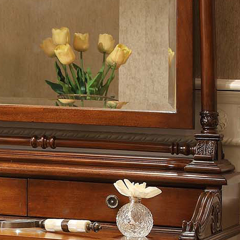 信益轩家具美式实木雕花妆镜妆台M-SZT002
