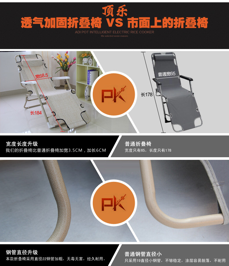 顶乐方管三用折叠躺椅ZDY-4