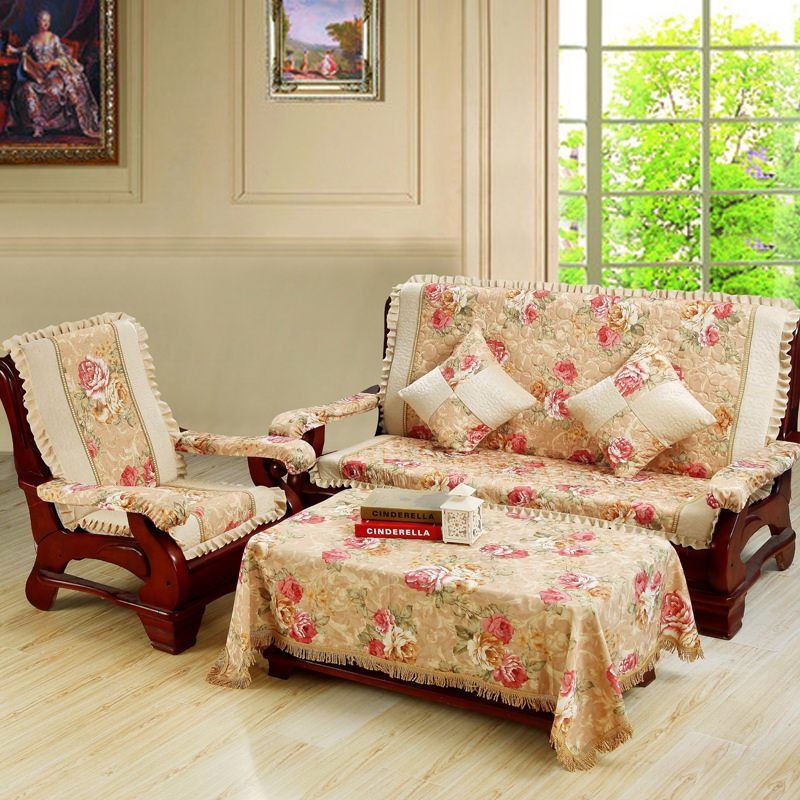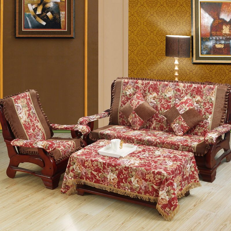 好多家实木沙发垫新款牡丹毛绒拼布红木椅垫
