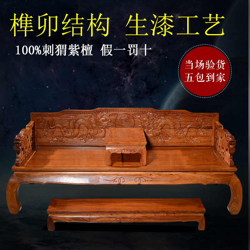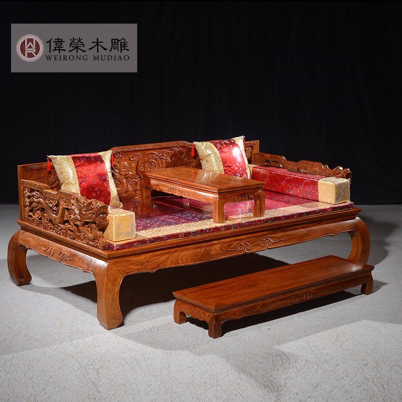 伟荣花梨木中式仿古罗汉床三件套床榻L02