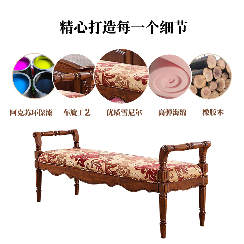 瑞福祥美式乡村全实木布艺床榻J352