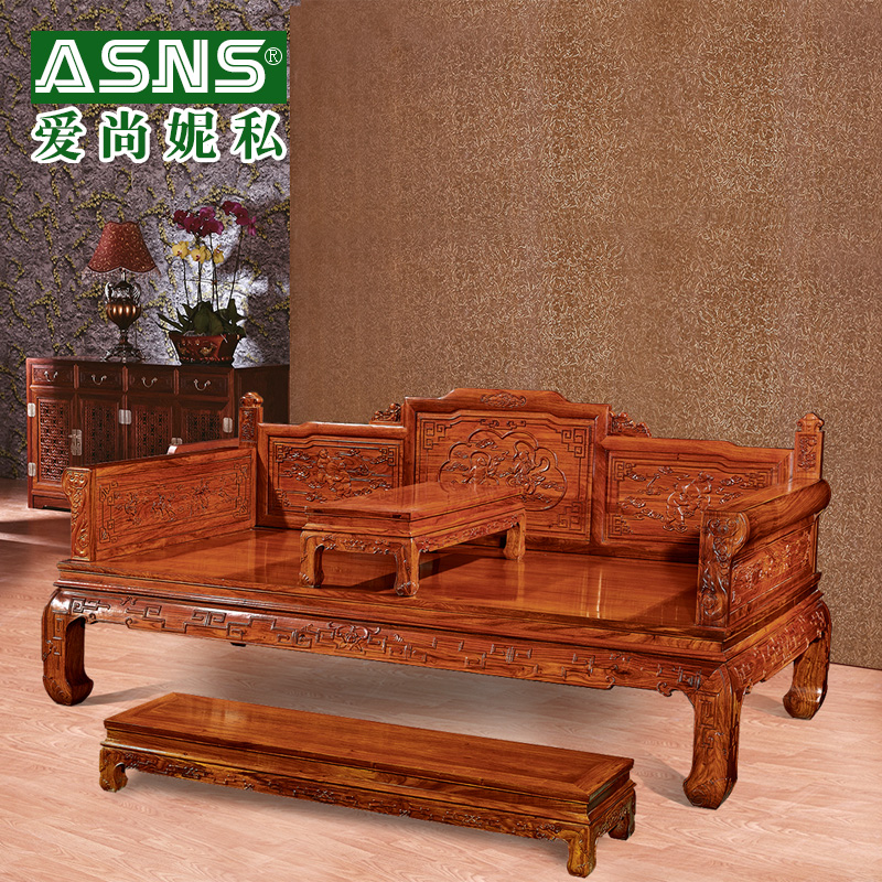 爱尚妮私实木床雕花罗汉榻如意罗汉床