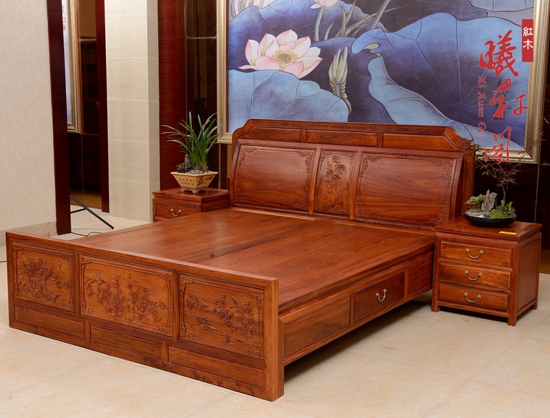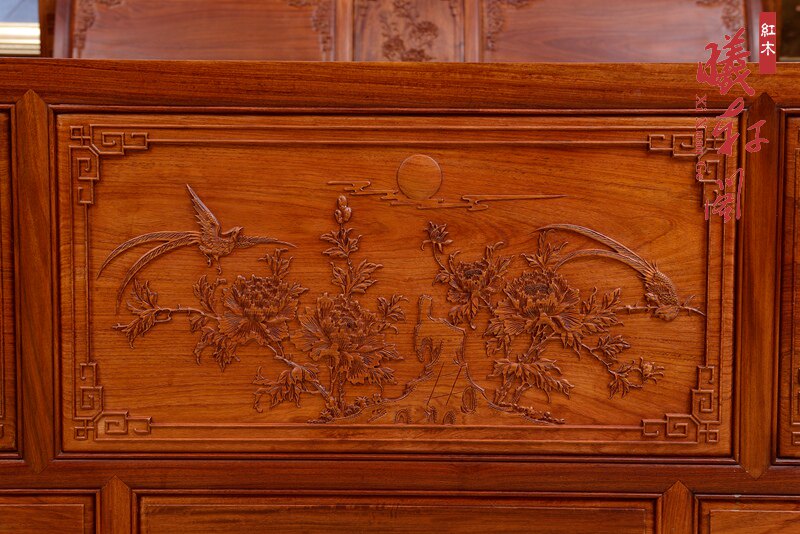 曦轩阁中式实木床榻缅花高低床02