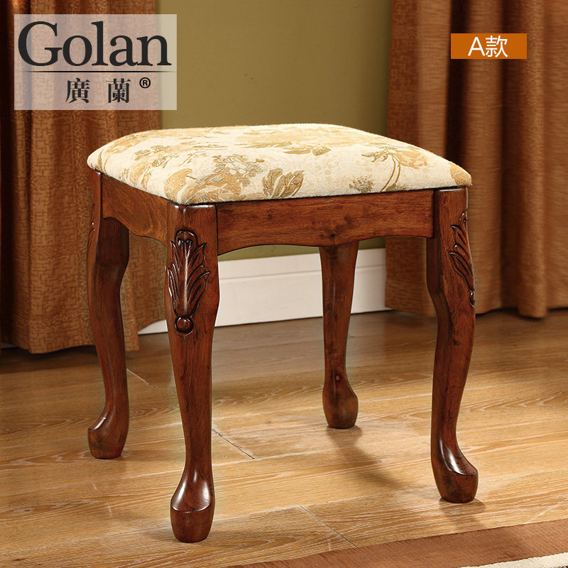 广兰梳妆凳实木家具美式换鞋凳子欧式书椅方凳化妆凳008