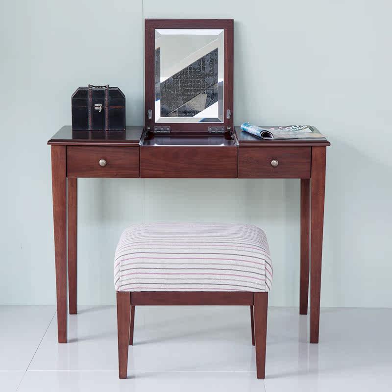 美朴生活戴安娜实木美式梳妆凳子椅布艺简约化妆凳田园方凳
