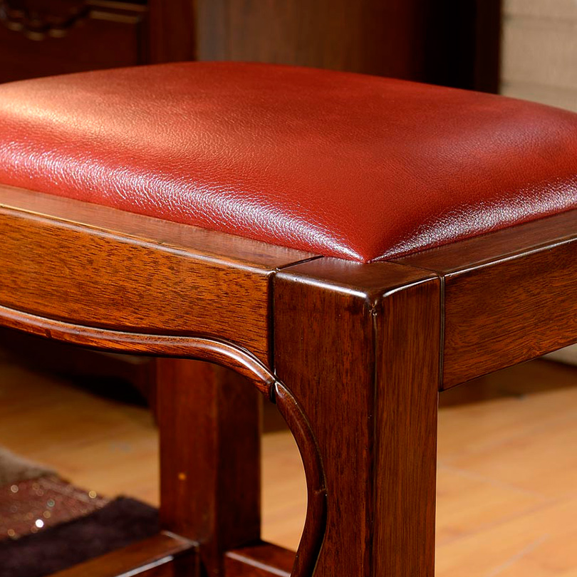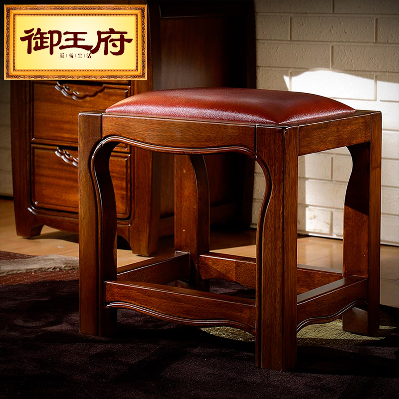 御王府实木梳妆凳胡桃木真皮座凳化妆中式实家具