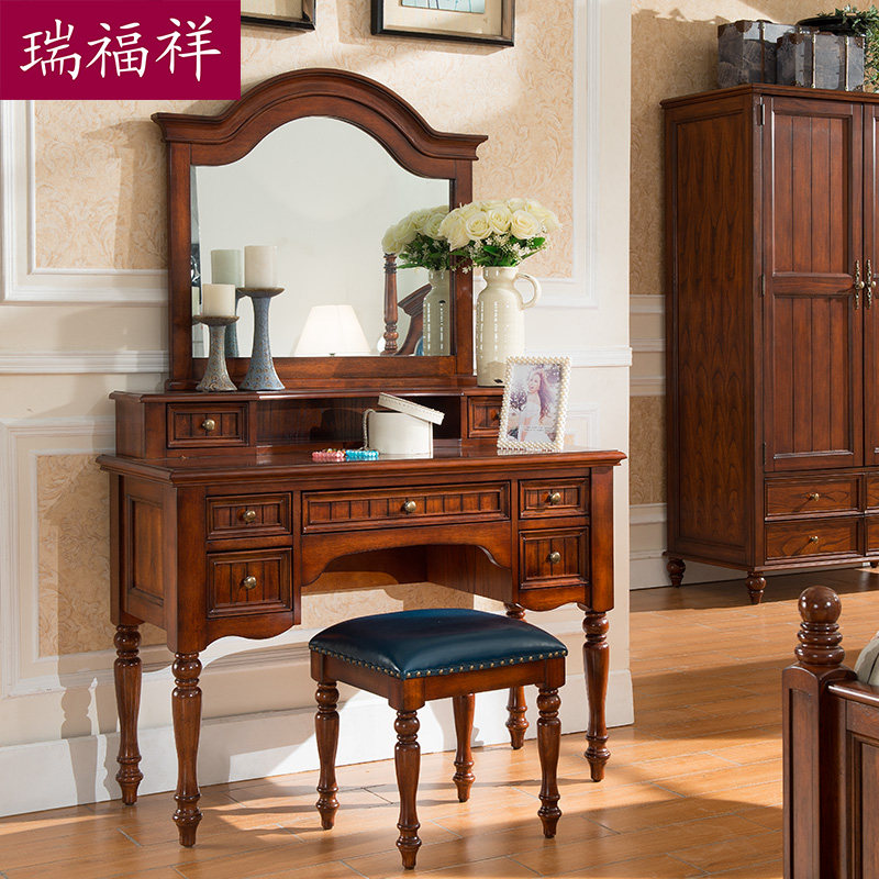 瑞福祥美式实木真皮梳妆凳G310A