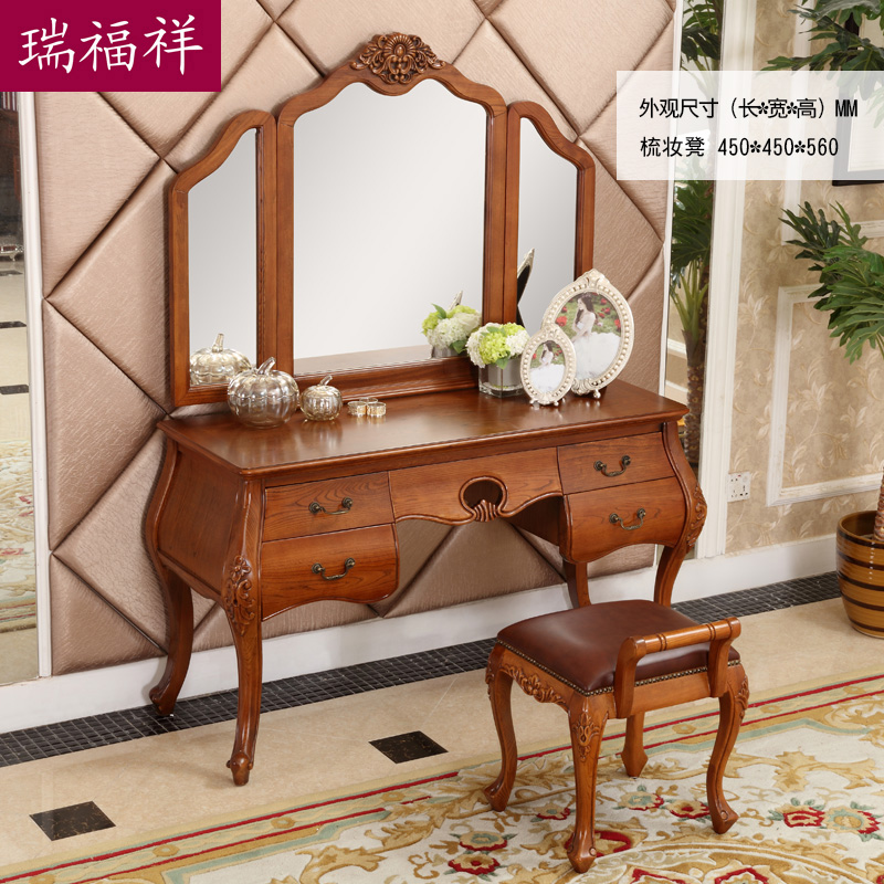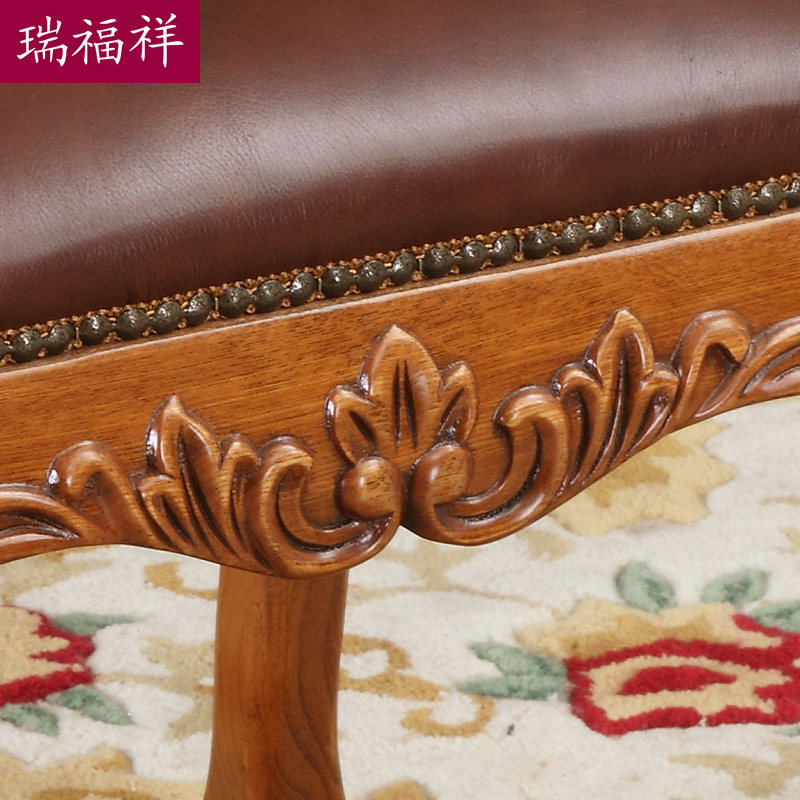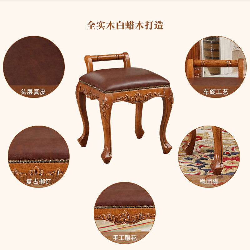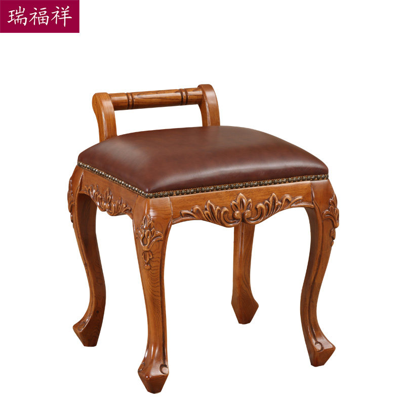 瑞福实木梳妆凳美式白蜡木真皮小凳子卧房实木家具g341
