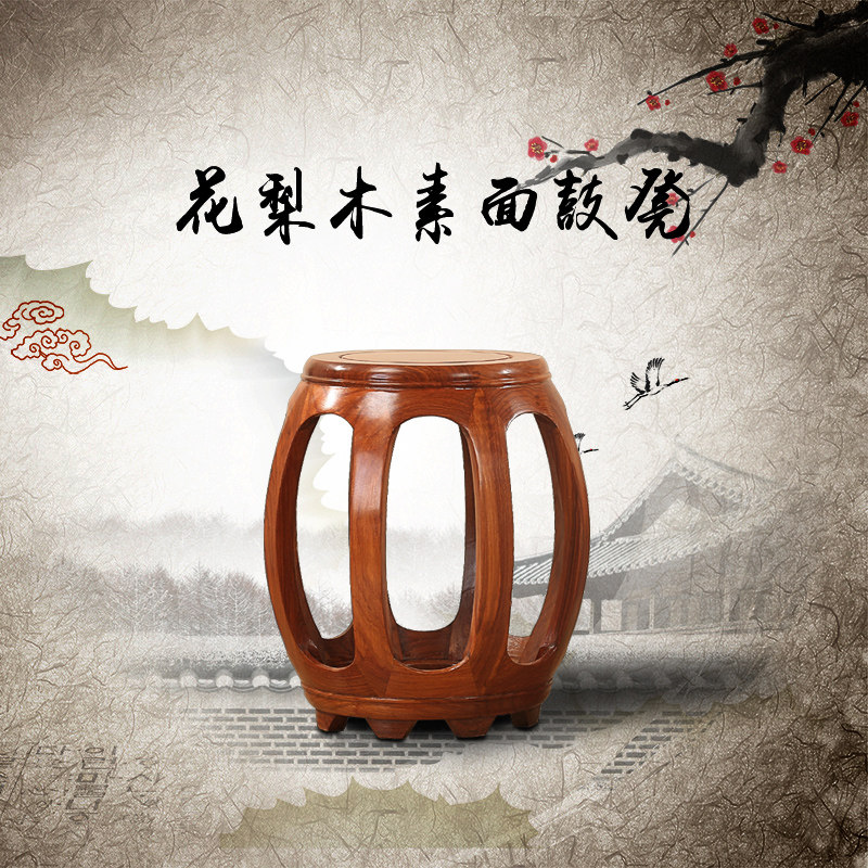 红木鼓凳古筝凳仿古鞋凳子小矮凳中式花梨木换鞋圆梳妆矮凳