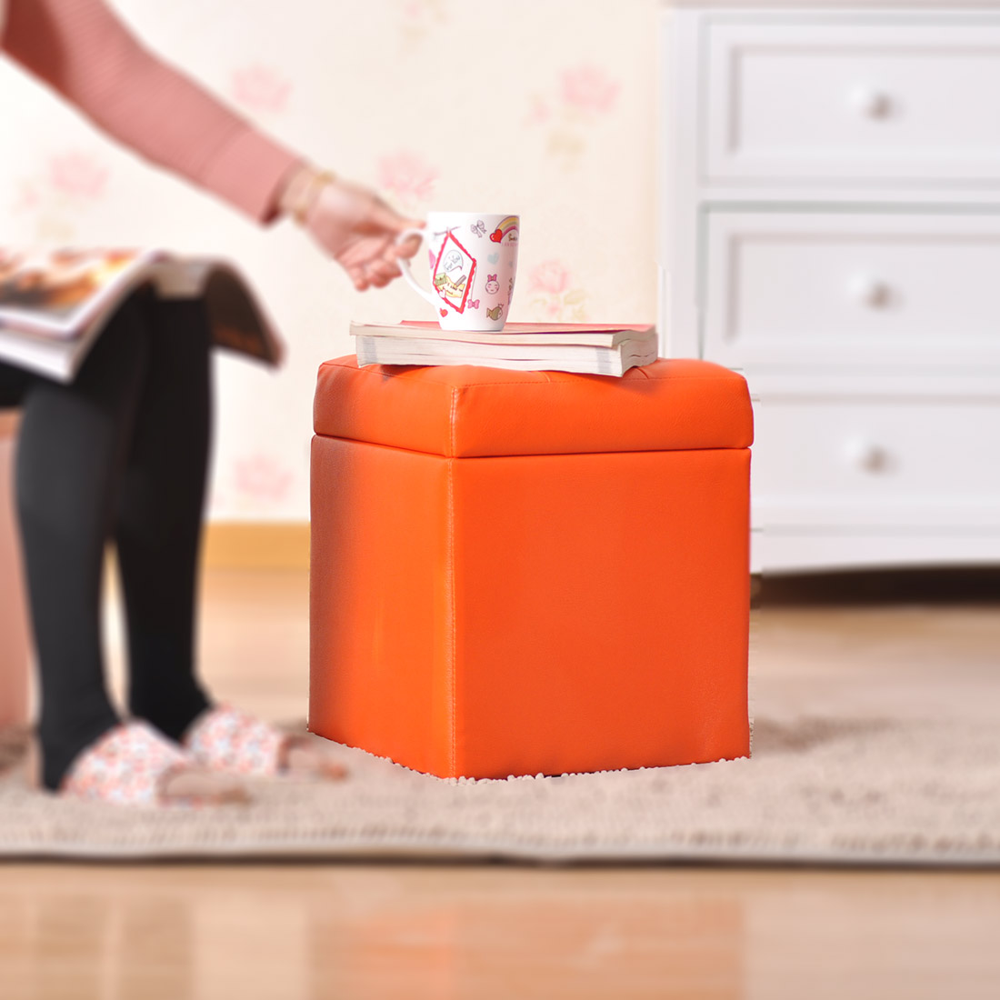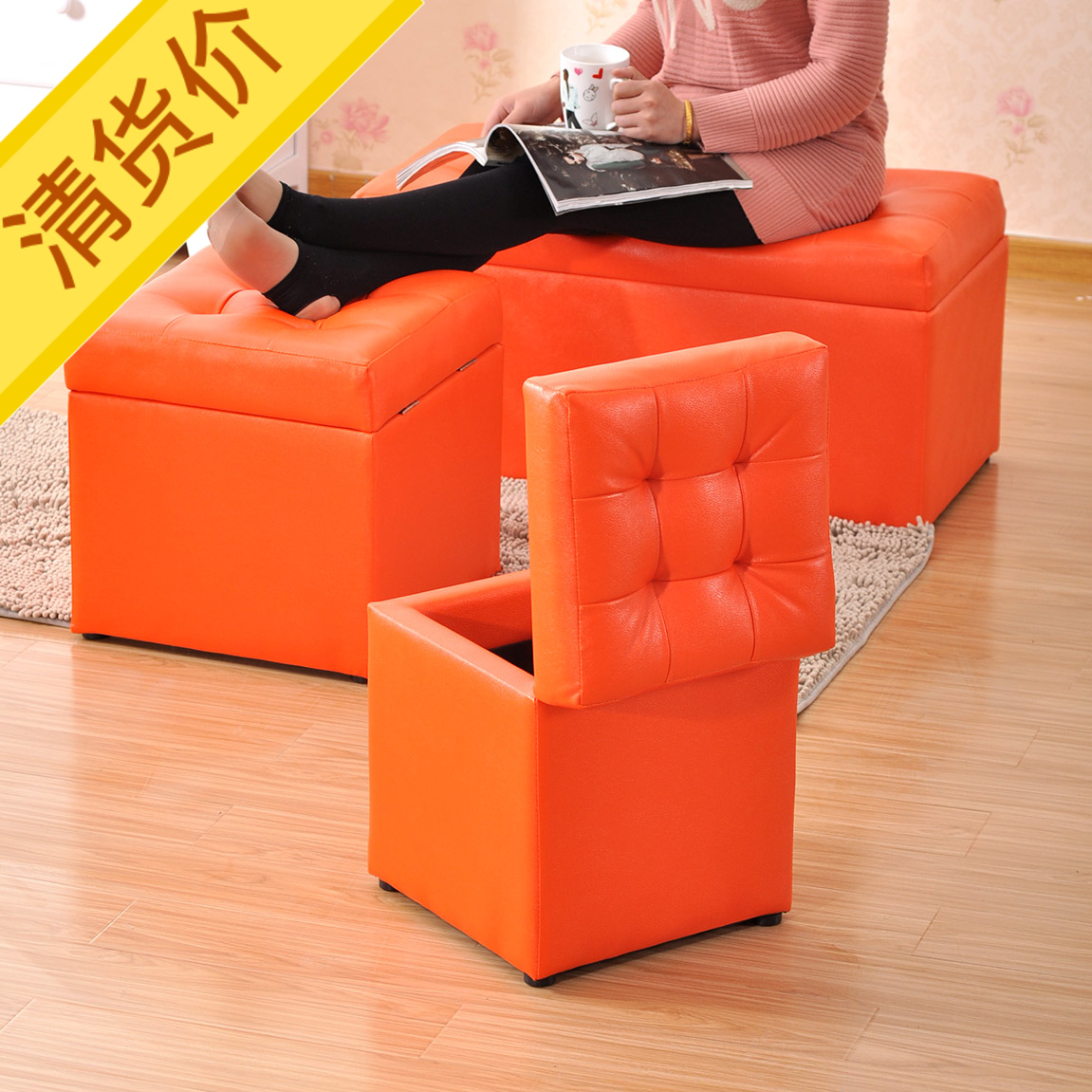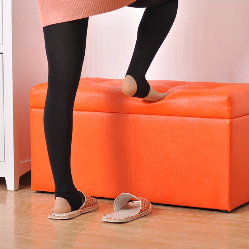 百露实木橙色大号换鞋凳