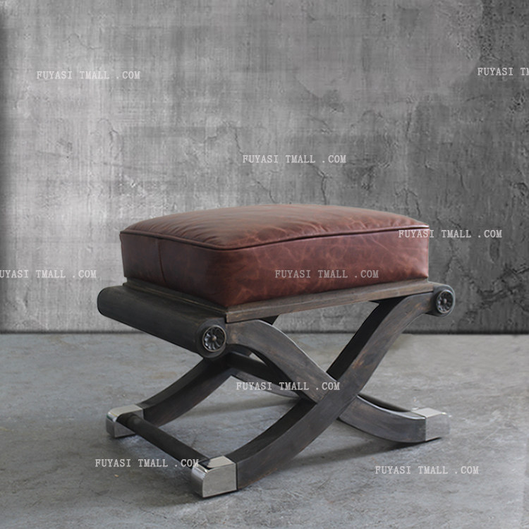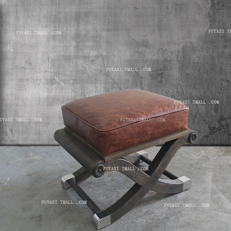 北欧真皮实木沙发矮凳YH-260