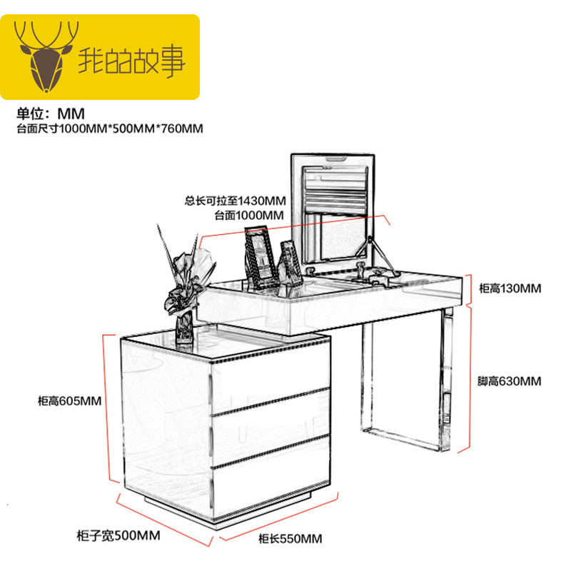 我的故事简约现代小户型翻盖化妆桌