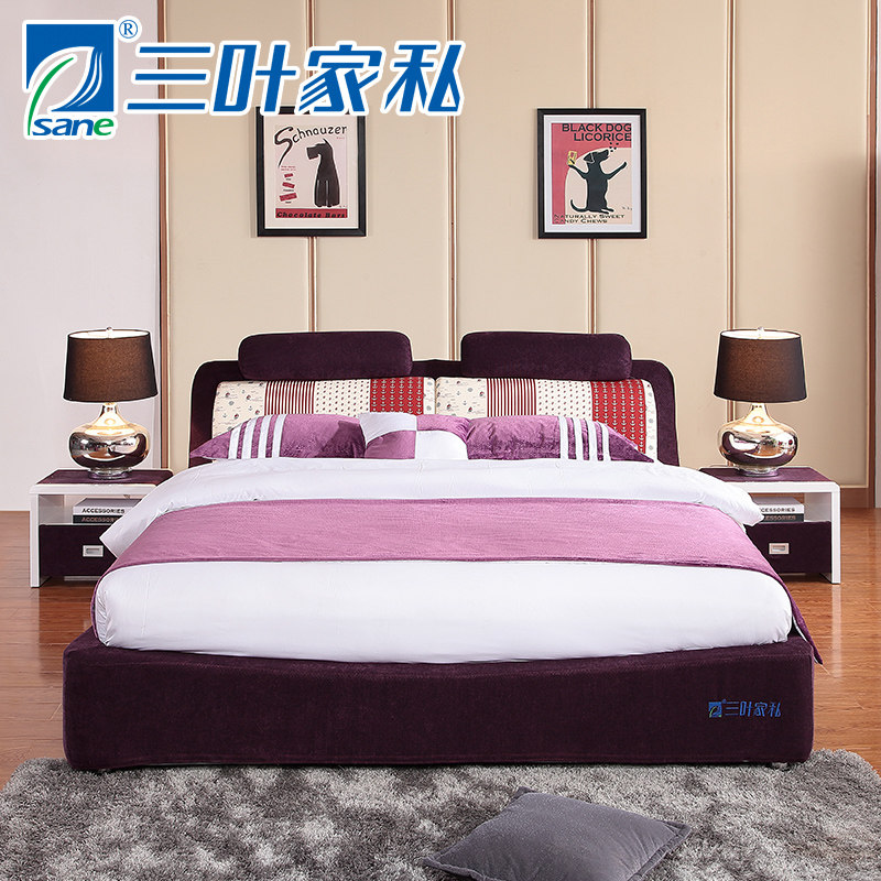 三叶家私现代简约紫色布艺床婚床1.51.8米
