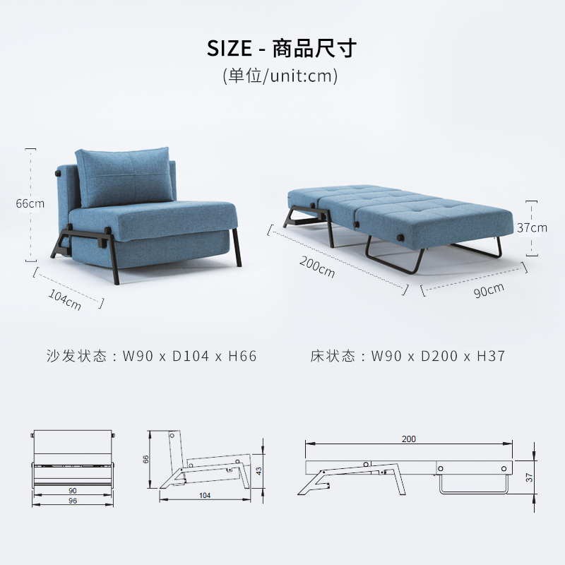 丹麦依诺维绅单人折叠沙发床90