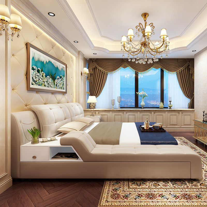 真皮储物双人床WF-1022