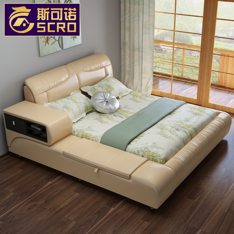 真皮储物双人床WF-1022