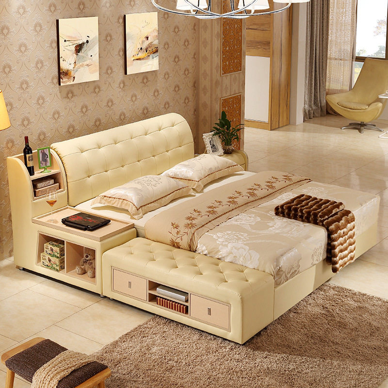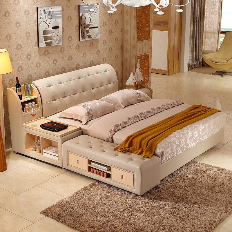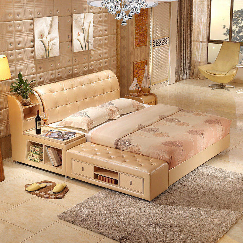 真皮储物双人床WF-1022