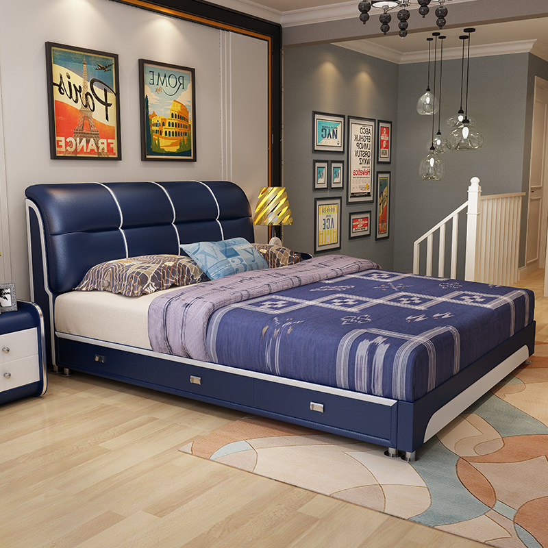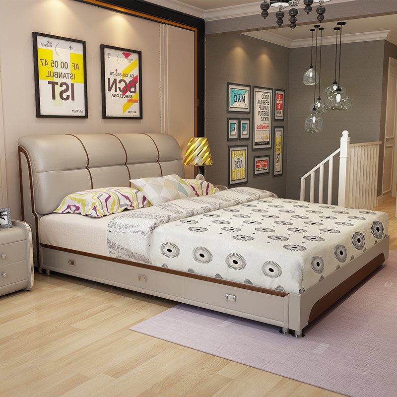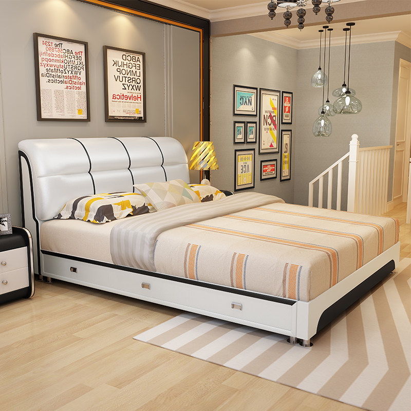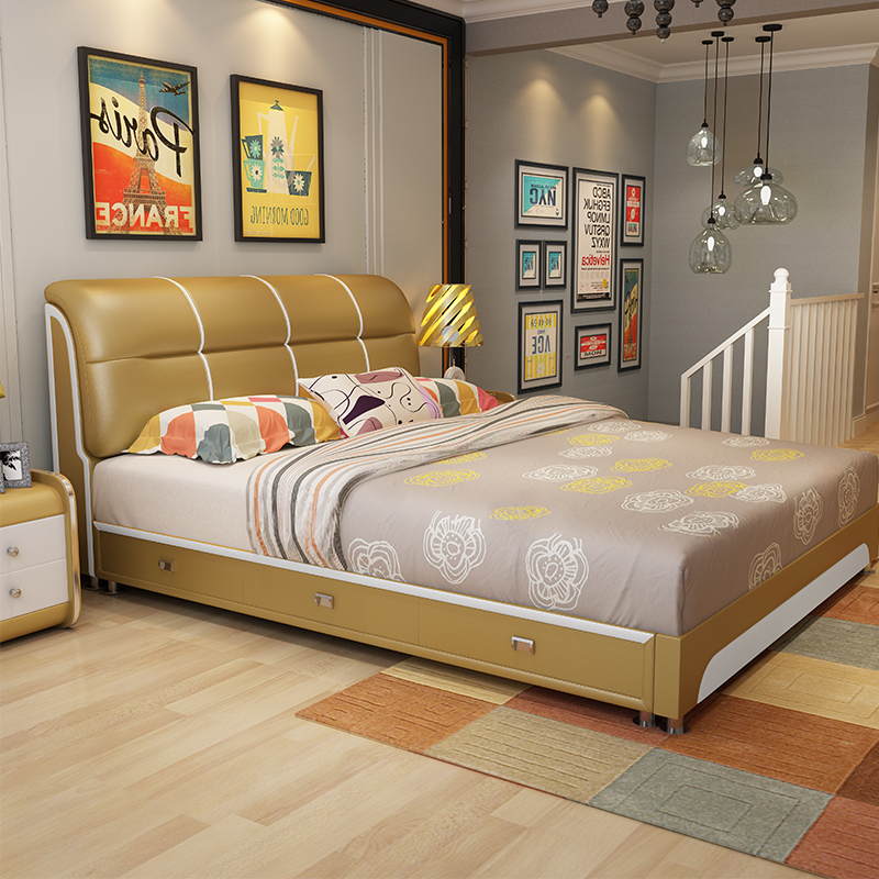 真皮储物双人床WF-1022