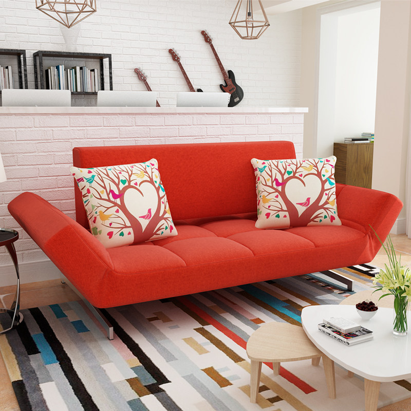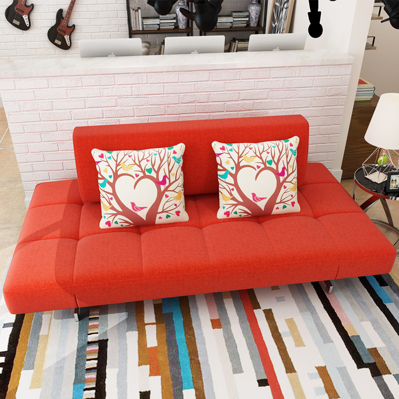 双人红色皮质折叠沙发床
