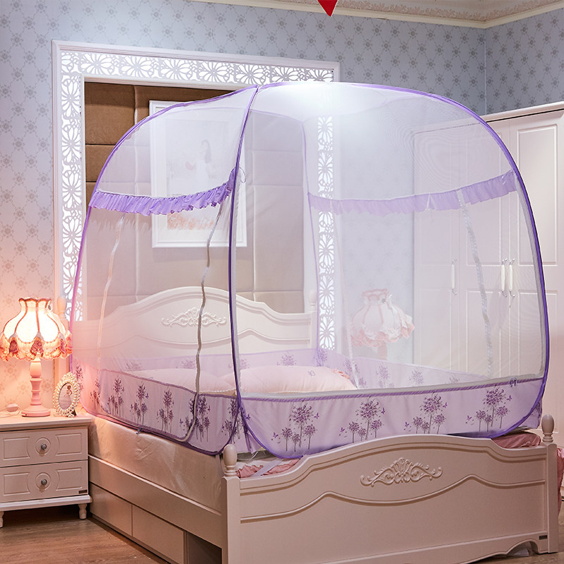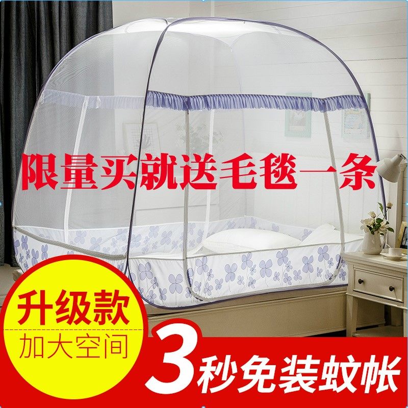 水星家纺不锈钢宫廷方顶三开门落地蚊帐