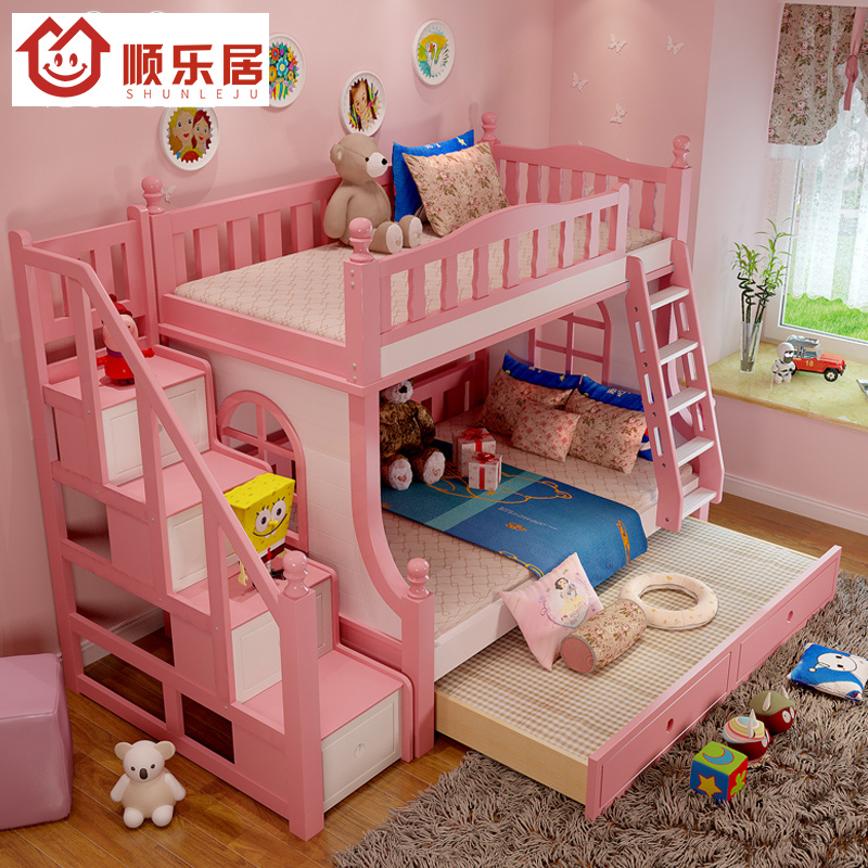 顺乐居上下铺木床双层6221粉色