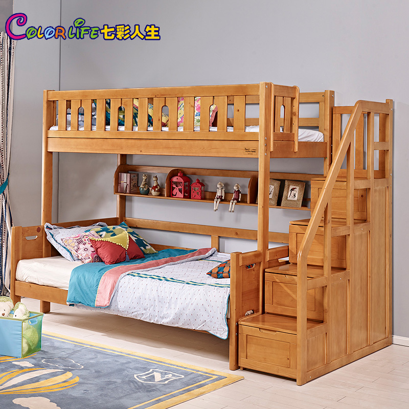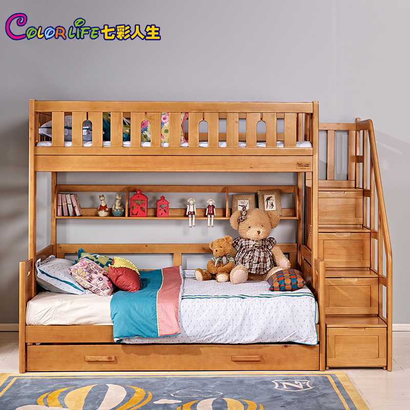 七彩人生儿童梯柜实木高低床ME-BH1040