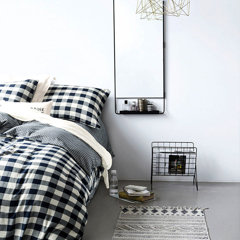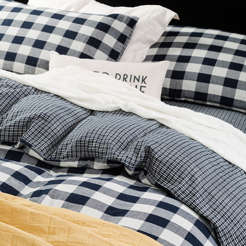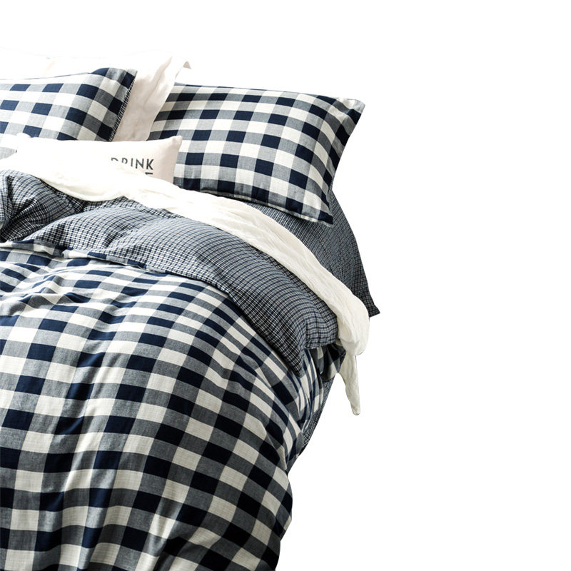 奇居良品全棉格纹双层纱床品四件SJT1820315