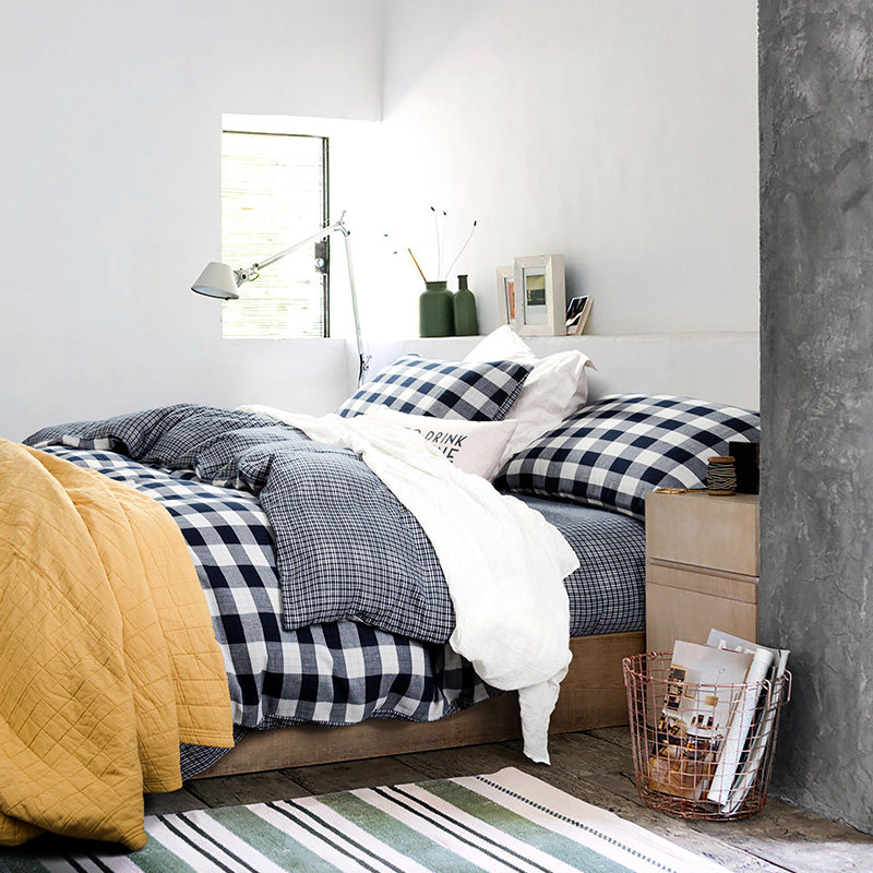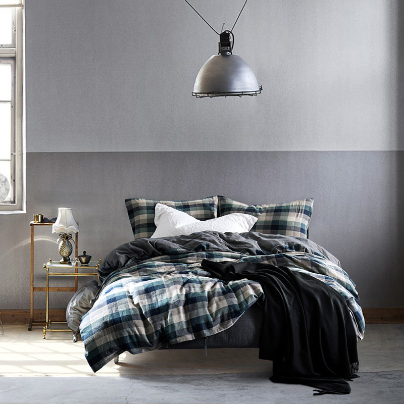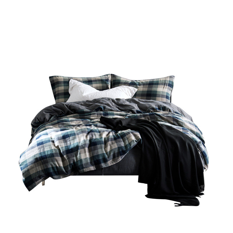 奇居良品全棉格纹色织双层纱床品四件套SJT182