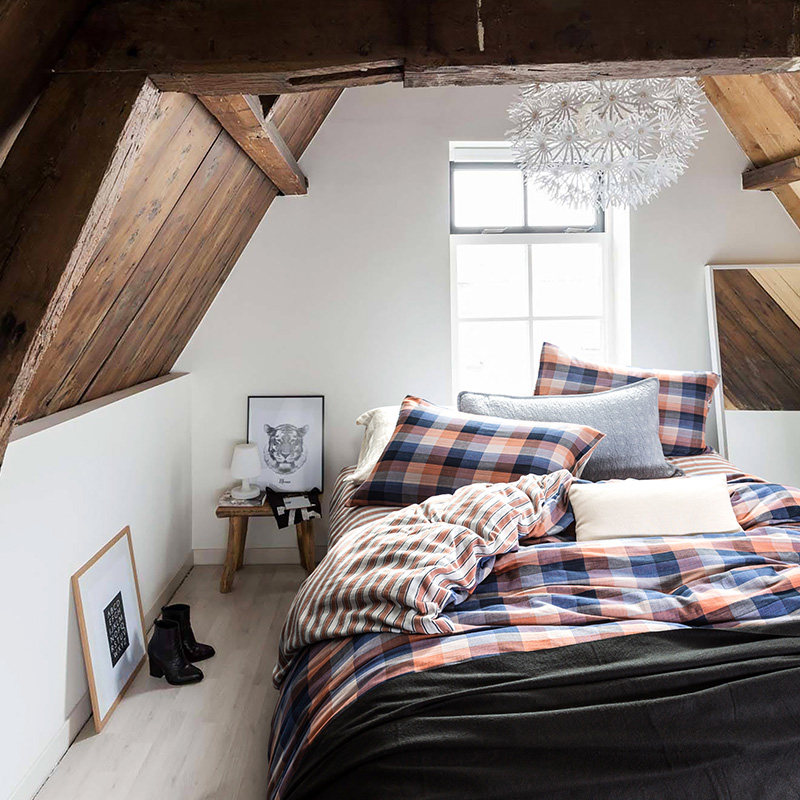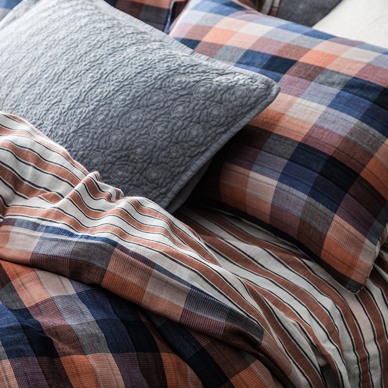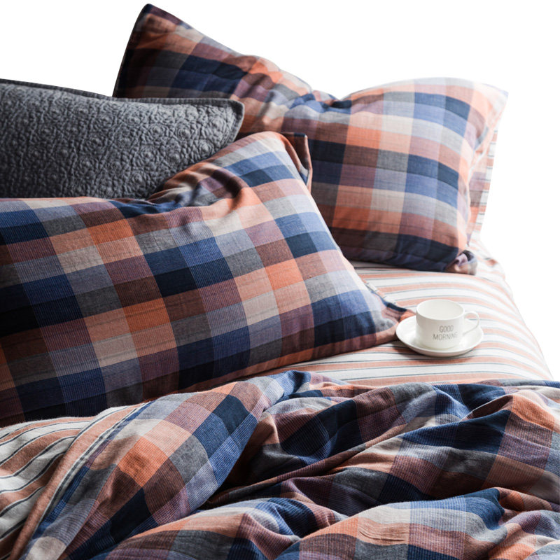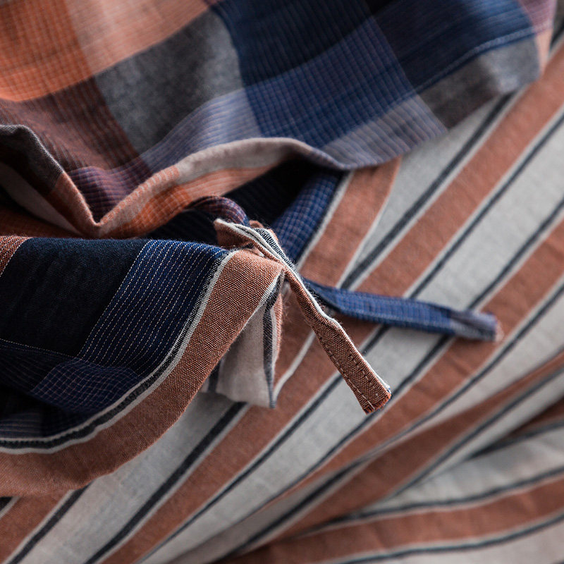 奇居良品全棉格纹双层纱床品四件套SJT1820215