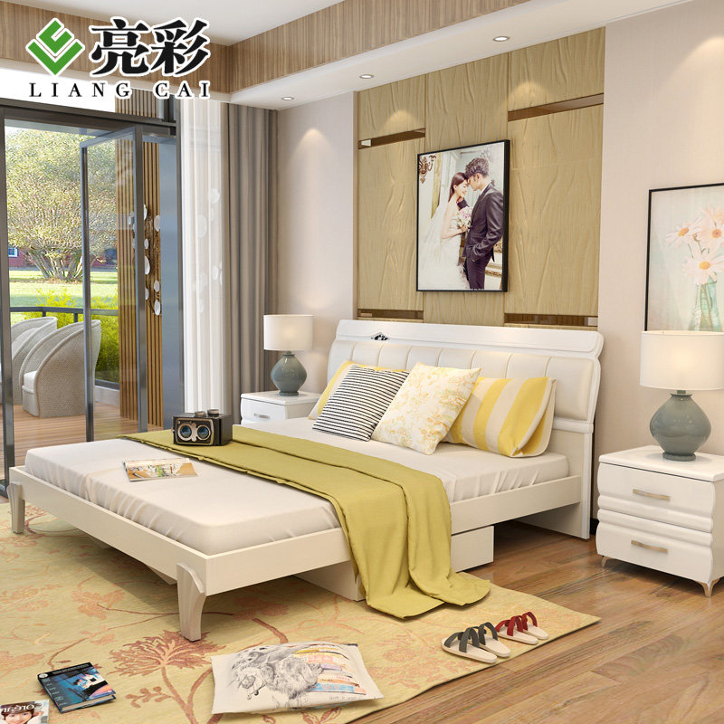 亮彩简约现代储物双人床六方6507